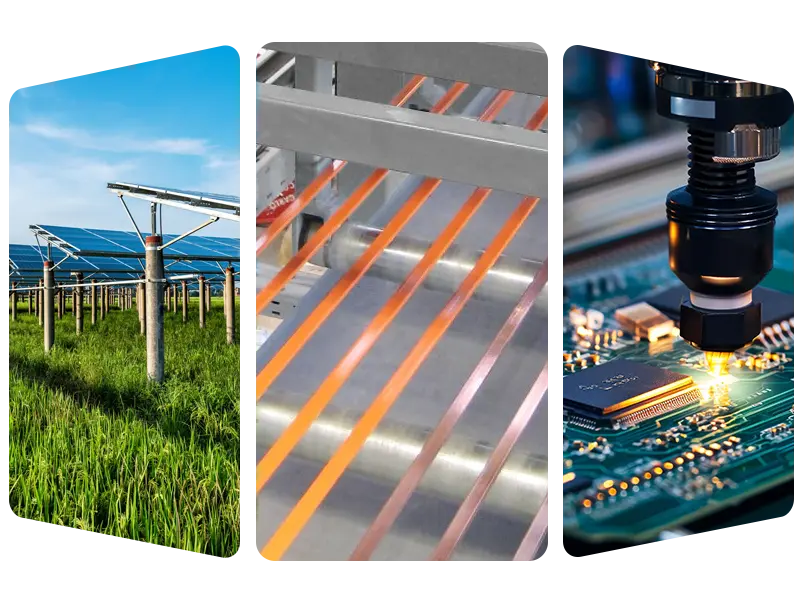 • ພາກສະຫນາມ Photovoltaic: ການຜະລິດຈໍານວນຫລາຍຂອງໂບການເຊື່ອມໂລຫະ photovoltaic ແລະ busbars ເພື່ອຊ່ວຍໃຫ້ອົງປະກອບດໍາເນີນການໄຟຟ້າປະສິດທິພາບ.